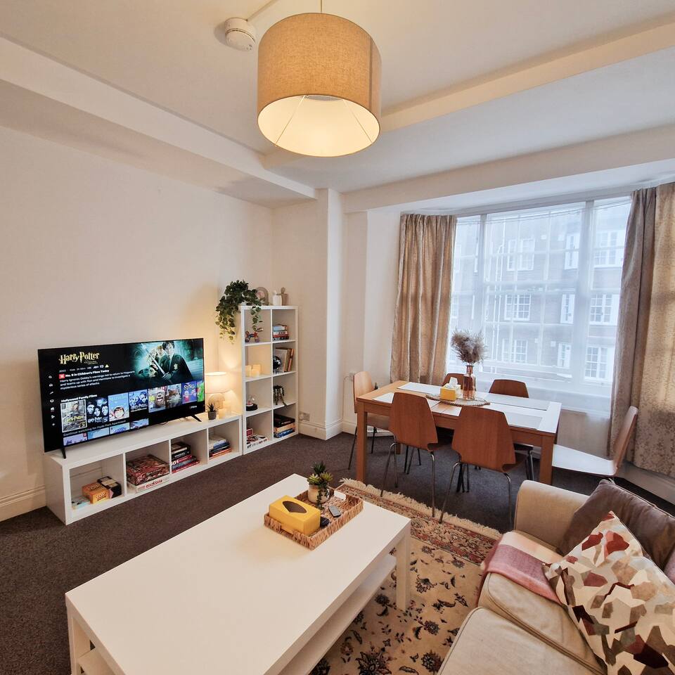 ★ BEDROOM 1 ★ A luxurious bedroom with king size bed, designed for relaxation and comfort, featuring soft furnishings and a soothing neutral color scheme. ✓ King Size Bed ✓ High-Quality Linens ✓ Plush Pillows & Cozy Blankets ✓ Towels on Bed ✓ USB Sockets in the room ✓ Spacious Closet with Hangers ✓ Blackout Curtains ★ BEDROOM 2 ★ A charming double bedroom offering the perfect balance of style and coziness. ✓ Double Bed ✓ High-Quality Linens ✓ Plush Pillows & Cozy Blankets ✓ Towels on Bed ✓ USB Socket by the Bed ✓ Closet with Hangers ✓ Blackout Curtains ★ LIVING ROOM ★ Unwind in the open-plan living space, thoughtfully furnished for relaxation and entertainment. ✓ Comfortable Sofa with Pillows and Blankets ✓ Smart TV with Netflix ✓ Large Windows ✓ Stylish Coffee Table ✓ Board Games & Books ★ KITCHEN ★ Cook and dine with ease in the fully equipped, modern kitchen. ✓ Microwave ✓ Stove & Oven ✓ Coffee Machine ✓ Toaster & Hot Water Kettle ✓ Tea & Sugar ✓ Refrigerator/Freezer ✓ Sink with Hot & Cold Water ✓ Washing Machine with Detergent Provided ✓ Glassware, Mugs, and Silverware ✓ Full Dining Set with Plates and Bowls ✓ Pots, Pans & Cooking Utensils ✓ Cleaning Essentials ★ BATHROOM ★ A contemporary bathroom designed for convenience and relaxation. ✓ Full bath with Shower ✓ Toilet ✓ Essential Toiletries ★ Hallway ★ ✓ Ironing Board & Iron ✓ Clothes Airer ✓ Hairdryer ✓ Mirror ★ EXTRA FEATURES ★ ✓ Cleaning Service: Available for long-term stays (additional fee). ✓ Prime Location: Situated in a safe apartment block in W2, with excellent access to Paddington Station, Hyde Park, and Bayswater. ✓ Transport Links: A short walk to Central Line and Circle Line stations for convenient travel across London. ✓ Local Attractions: Near Hyde Park, Kensington Palace, Portobello Market, and vibrant Notting Hill. ✓ Family-Friendly: Quiet, secure, and spacious for families or groups. ✓ Business-Ready: Fast Wi-Fi and a dedicated workspace for professionals. ✓ Flexible Check-In/Check-Out: Available upon request (additional fee). ✓ Long Stay Discounts: Special rates for extended stays. Perfect For: Business travelers, contractors, relocation agents, insurance accommodation, or families seeking premium short- or medium-term stays in Central London.