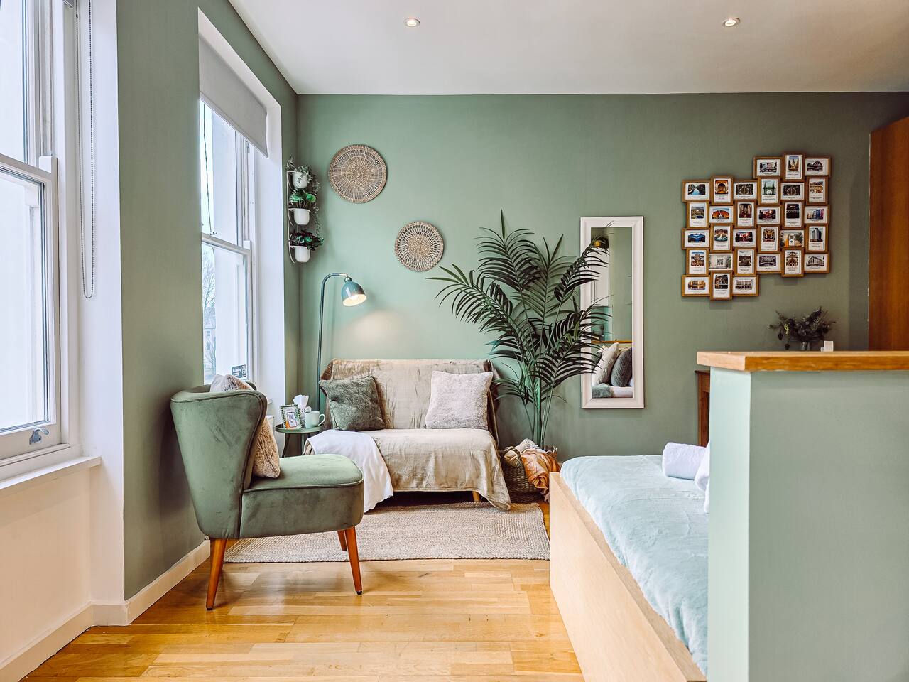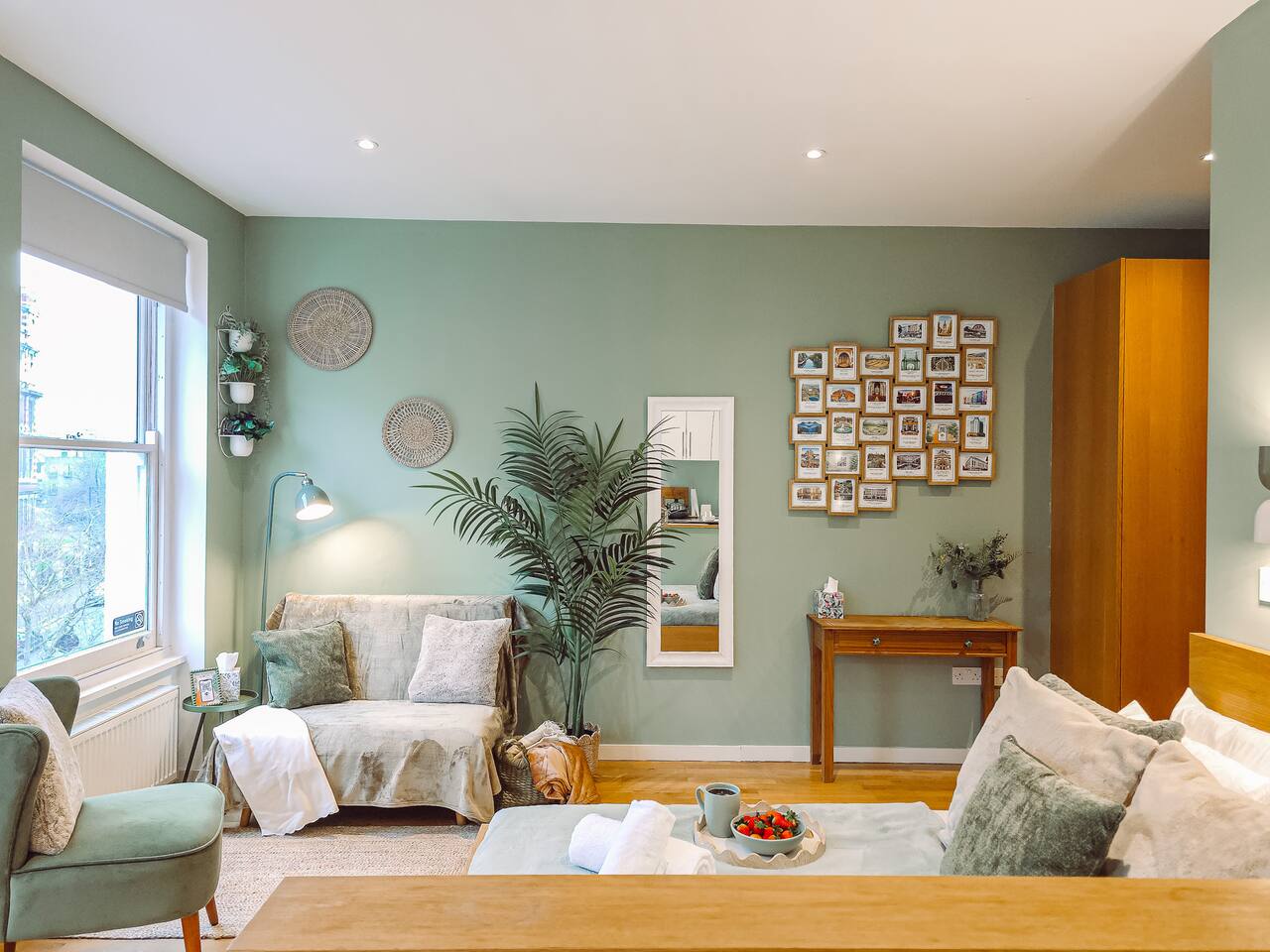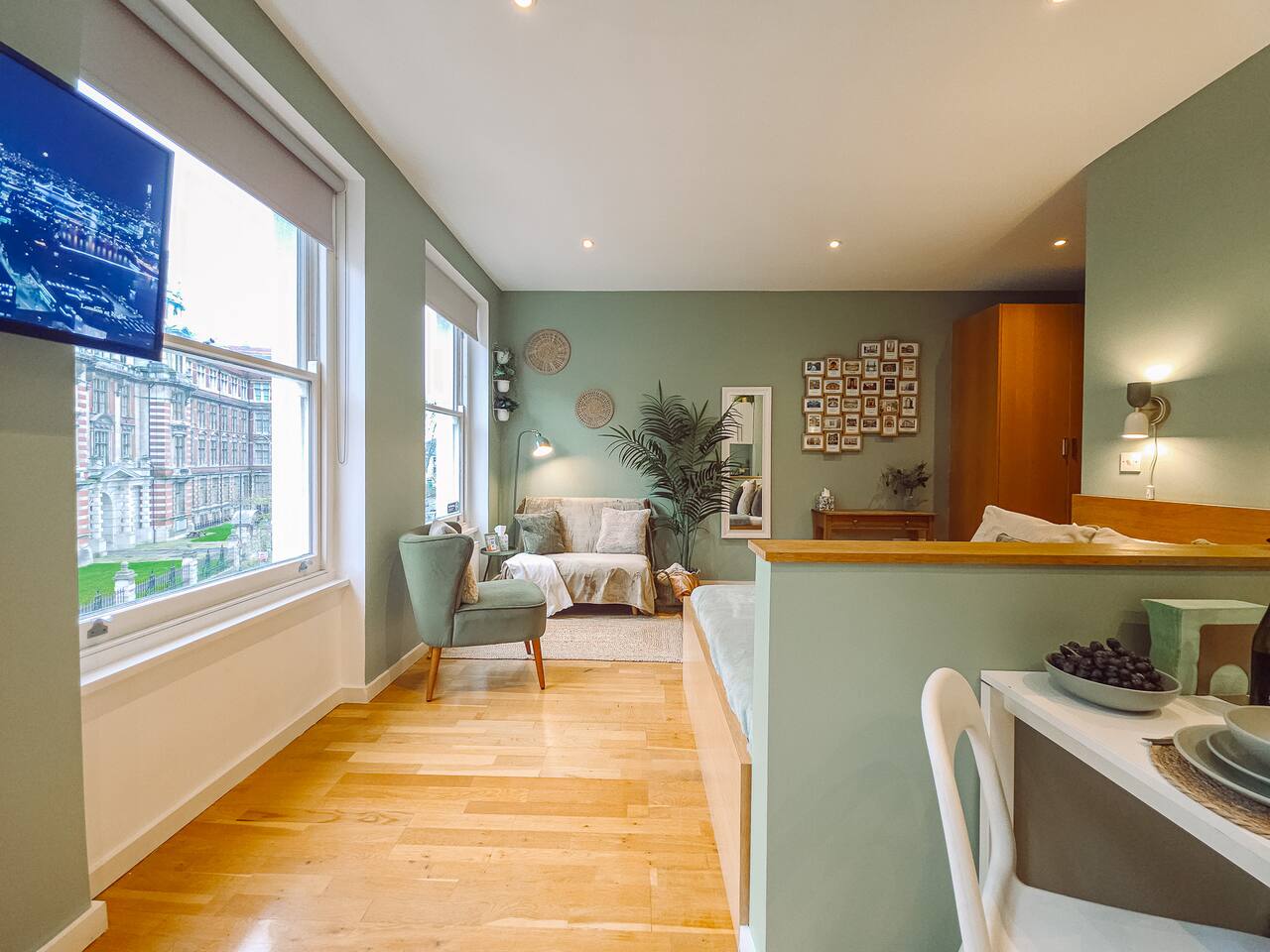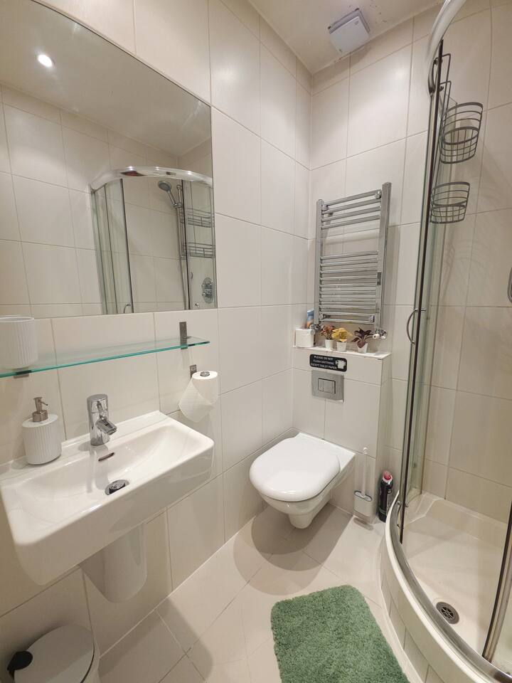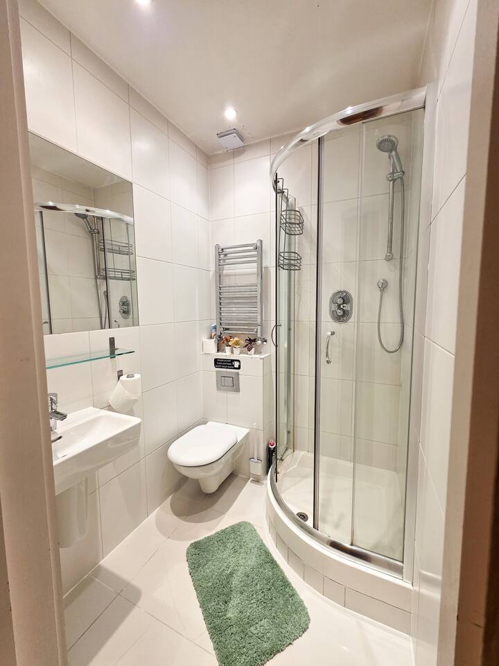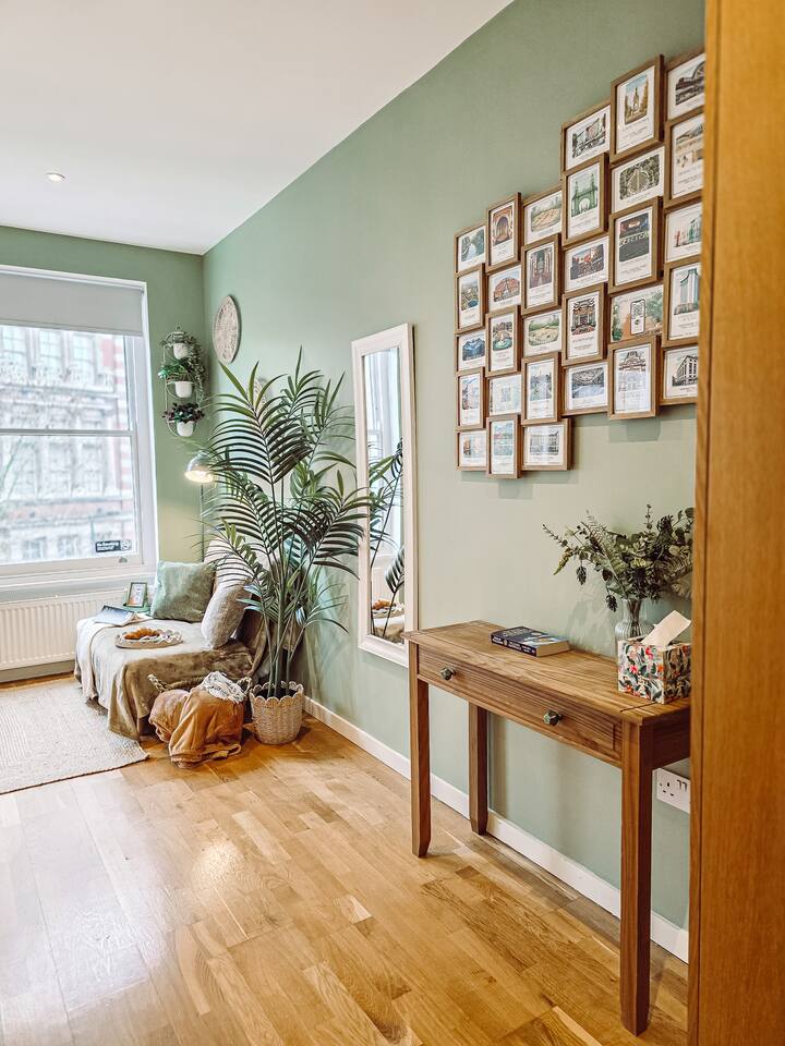 ✨ The Space A bright and thoughtfully designed studio apartment offering comfort and convenience in the heart of Kensington. Whether you’re visiting London for work, leisure, or a longer stay, this cozy third-floor home provides everything you need for an easy, comfortable experience. 🛏️ Bedroom / Living & Dining ✓ Bright and welcoming space with tasteful décor and large window ✓ Comfy double bed with fresh linens, pillows & blankets ✓ Smart TV with Netflix access for relaxed evenings ✓ Dining table for 2 that doubles as a workspace ✓ Blackout blind for a restful sleep ✓ Wardrobe with hangers, iron & ironing board ✓ Clothes airer, hairdryer & mirror ✓ Bedside lamp and soft lighting for a homely feel 🍳 Kitchen Cook light meals or enjoy morning coffee in your compact kitchenette: ✓ Microwave grill (no oven) and stove hob ✓ Refrigerator with freezer section ✓ Toaster, kettle & Nespresso machine ✓ Pots, pans, utensils, cutlery & glassware ✓ Tea, coffee, sugar, salt & pepper provided ✓ Cleaning supplies for your use 🚿 Bathroom A clean bathroom featuring: ✓ Shower with good water pressure ✓ Toilet, mirror & wash basin ✓ Toiletries and towels provided 🧺 Laundry Room A shared laundry facility is available within the building. ✓ £3 per wash and £1 per dry (pay per use machines) ✓ Drying rack available in the flat for convenience 🌟 Extra Features ✓ Fast Wi-Fi for work or streaming ✓ Weekly cleaning service available for long-term guests (extra fee) ✓ Flexible check-in/out possible on request (subject to availability) ✓ Second-floor flat — please note there is no lift in the building 📍 Location & Lifestyle ✓ 3 min walk to Kensington Olympia ✓ 5 min walk to Exhibition Centre ✓ 10 min to Westfield and Sheperd's Bush ✓ Quick connections to Hammersmith, South Kensington & the West End ✓ Moments from cafés, bakeries, restaurants and local shops ✓ Short ride to Hyde Park and Holland Park 🚀 Perfect For ✓ Solo travelers & city-break couples ✓ Professionals on short or medium stays ✓ Relocators & contractors needing an easy London base